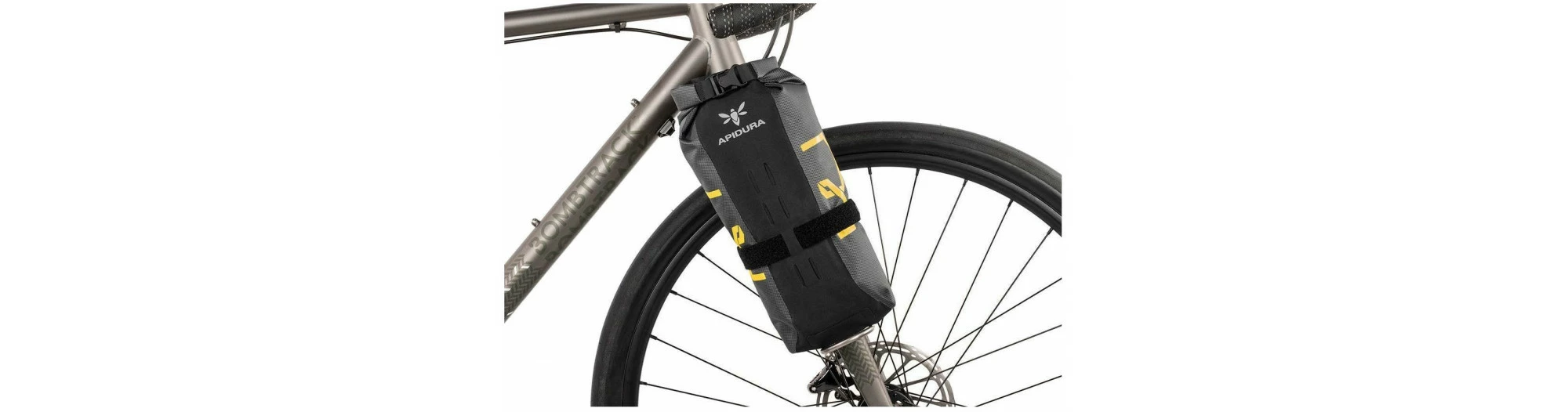 Sacoche étanche à fixer sur les montants de la fourche à l’aide d’un support spécifique sur la fourche.