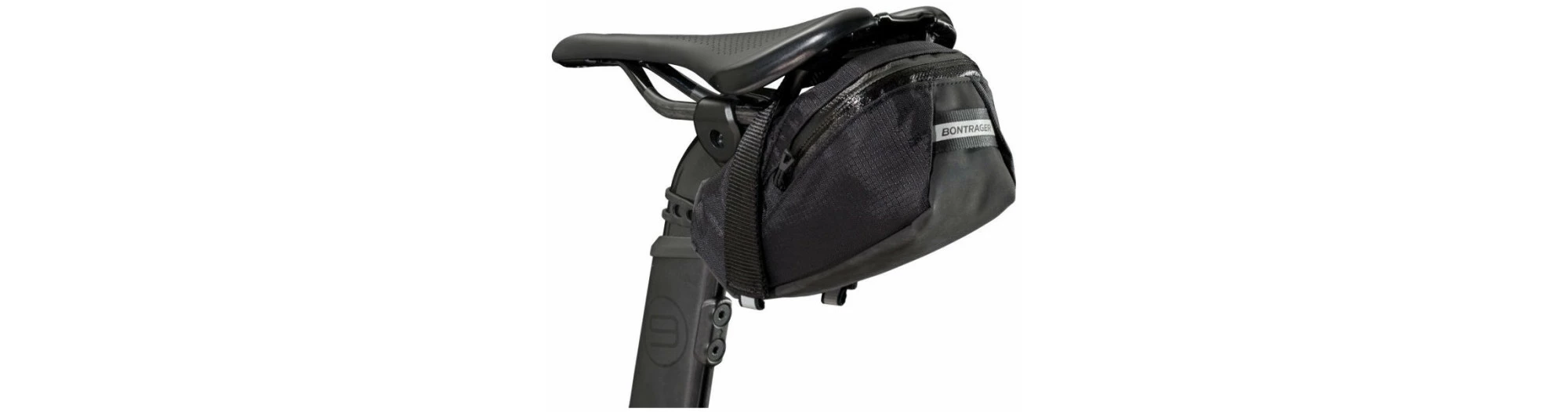 - La fixation à bande auto-agrippante sur la selle maintient la sacoche en contact avec le vélo.