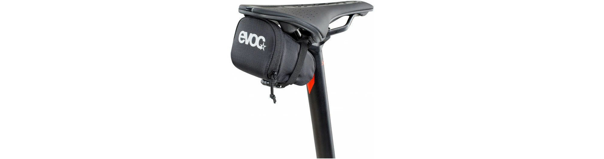 Sacoche de selle extra-légère pour boyaux de roues de vélo de route et kit de de réparation. Compartiment pour petites pièces (tissu filet). Visibilité accrue grâce au logo imprimé réfléchissant. Montage avec boucle