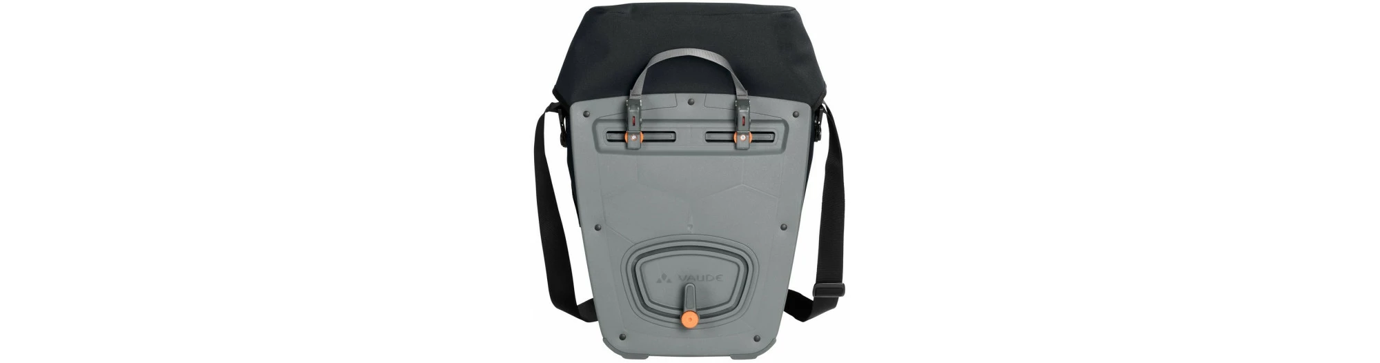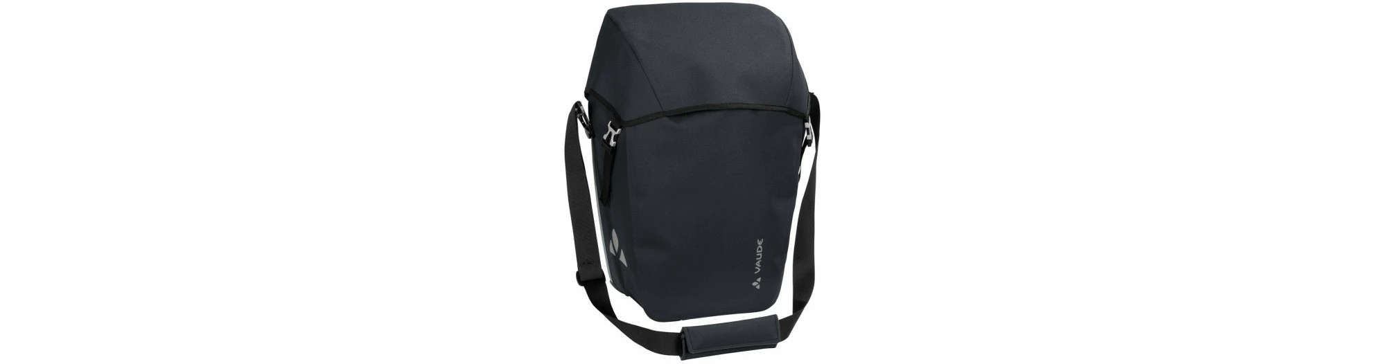 La ville d’Obereisenbach vous salue ! Cette sacoche cycliste urbaine avec fermeture à rabat est climatiquement neutre et fabriquée dans la petite ville d’Obereisenbach dans le sud de l’Allemagne, où se trouve le siège de Vaude. La matière résistante à aspect textile est totalement sans PVC et soudée de manière étanche ce qui rend l’utilisation d’une housse de pluie inutile. Le design de la sacoche est épuré et elle est équipée d’un grand compartiment principal avec soufflet d’élargissement. Ces sacoches sont fixées à droite et à gauche du porte-bagages arrière et stables grâce au système QMR 2.0 et à une plaque rigide. Elles sont ajustables à l’aide de petites roues et peuvent rapidement et facilement être fixées et enlevées. Elles peuvent être attachées directement au crochet QMR en utilisant tout simplement un cadenas à vélo. Grâce à la bandoulière livrée avec, ce modèle peut être confortablement porté sur l’épaule. Des éléments réfléchissants garantissent une meilleure visibilité sur la route. Contenu: une sacoche (single).