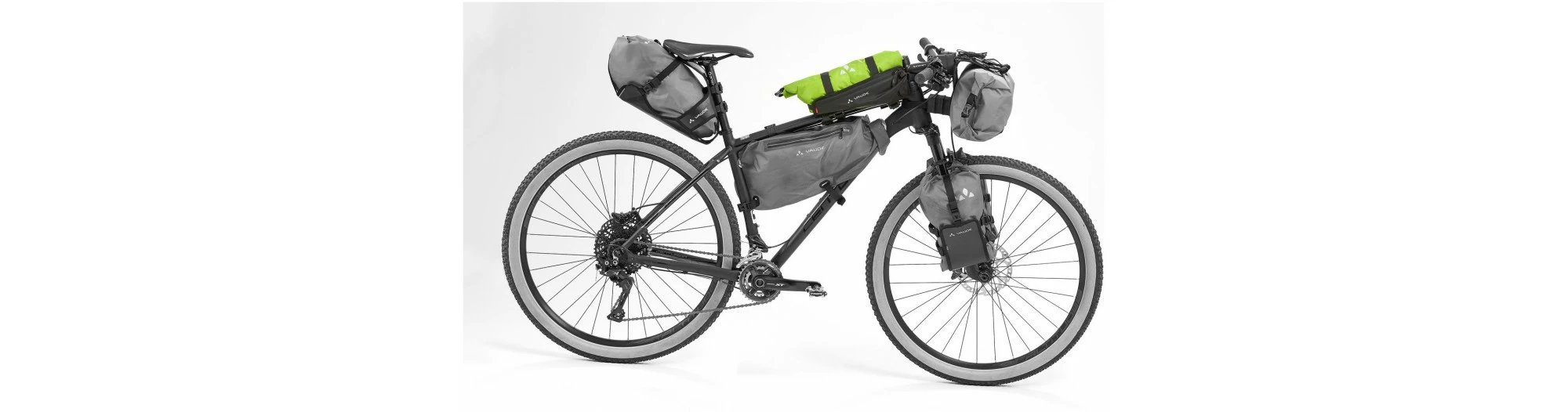 Trailguide est ce qu’il se fait de mieux en matière de sacoche de vélo ! Il se fixe sur le tube supérieur, est ainsi facile d’accès et offre un espace suffisant pour ranger des accessoires importants et des bagages qui doivent toujours rester à portée de main. Avec sa capacité de stockage de 5 litres et de 2 kilogrammes, il constitue la pièce de puzzle parfaite pour les voyageurs à vélo qui souhaitent répartir leurs bagages de manière judicieuse dans des sacoches individuelles sur le vélo. Trailguide se compose d’une sacoche étanche à l’eau avec fermeture à enroulement et poche à fermeture éclair, et peut se porter en bandoulière. Il se loge dans une cage de compression robuste et se fixe à l’aide de deux courroies sur le tube supérieur. Pour l’empêcher de glisser, Trailguide est fixé en plus au tube de direction. Une bande velcro sur la partie inférieure permet d’immobiliser la sacoche pour qu’elle reste bien en place et ne puisse plus glisser.Trailmulti est imperméabilisé avec la finition Eco Finish, écologique et sans fluorocarbures (PFC). Le label Green Shape de VAUDE garantit en outre un produit écologique et fonctionnel fabriqué dans des matériaux durables.